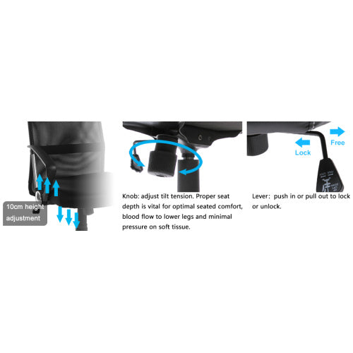 This mesh office chair has been designed to prevent body heat and moisture build up. The breathable mesh fabric seat provides ample padding for all day comfort.